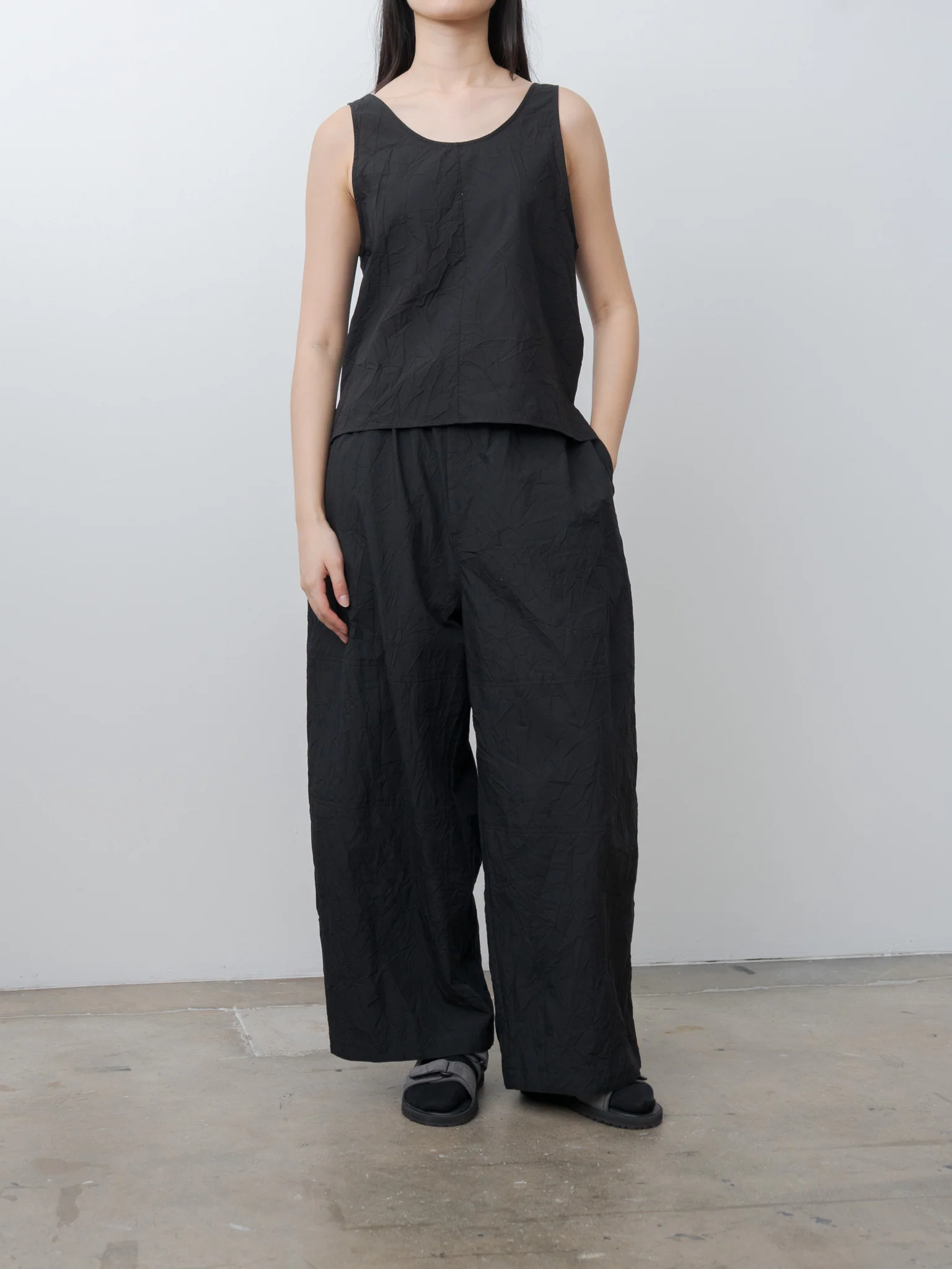 Made from ATON’s original wrinkled cotton lawn, this tank top has a crisp texture and natural wrinkling, giving it a lived-in, airy look and feel. Details include a boxy fit, wide armholes and a side split hem with a longer length in the back.