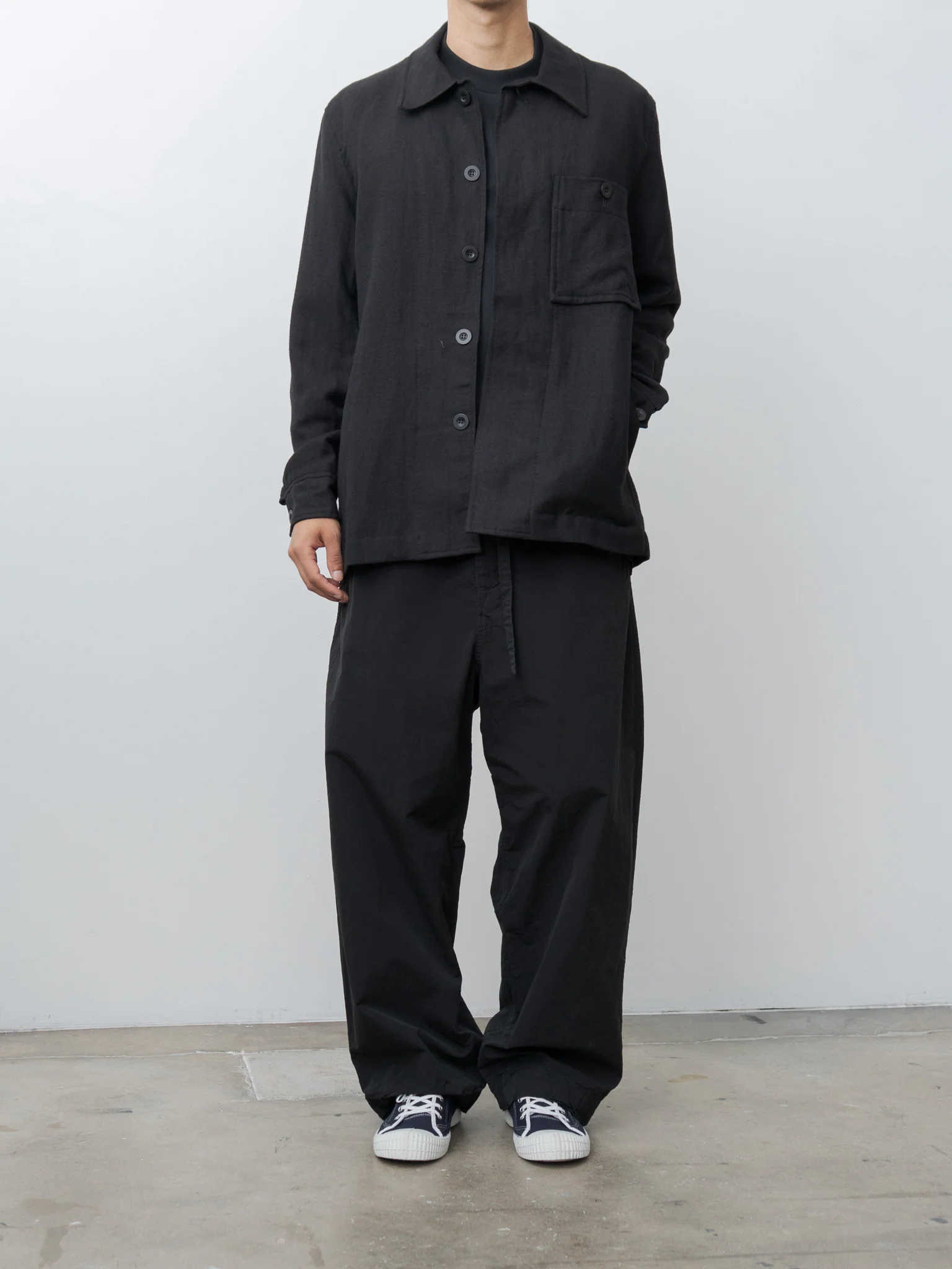 The Aki is an unlined shirt jacket crafted from FELT, a light-to-midweight wool linen blend with a soft hand. The fabric combines the natural luster and drape of linen with the warmth and softness of wool. It features a spread collar, concealed front button closure, side seam pockets, buttoned cuffs, and a buttoned patch pocket at the chest. Relaxed fit.