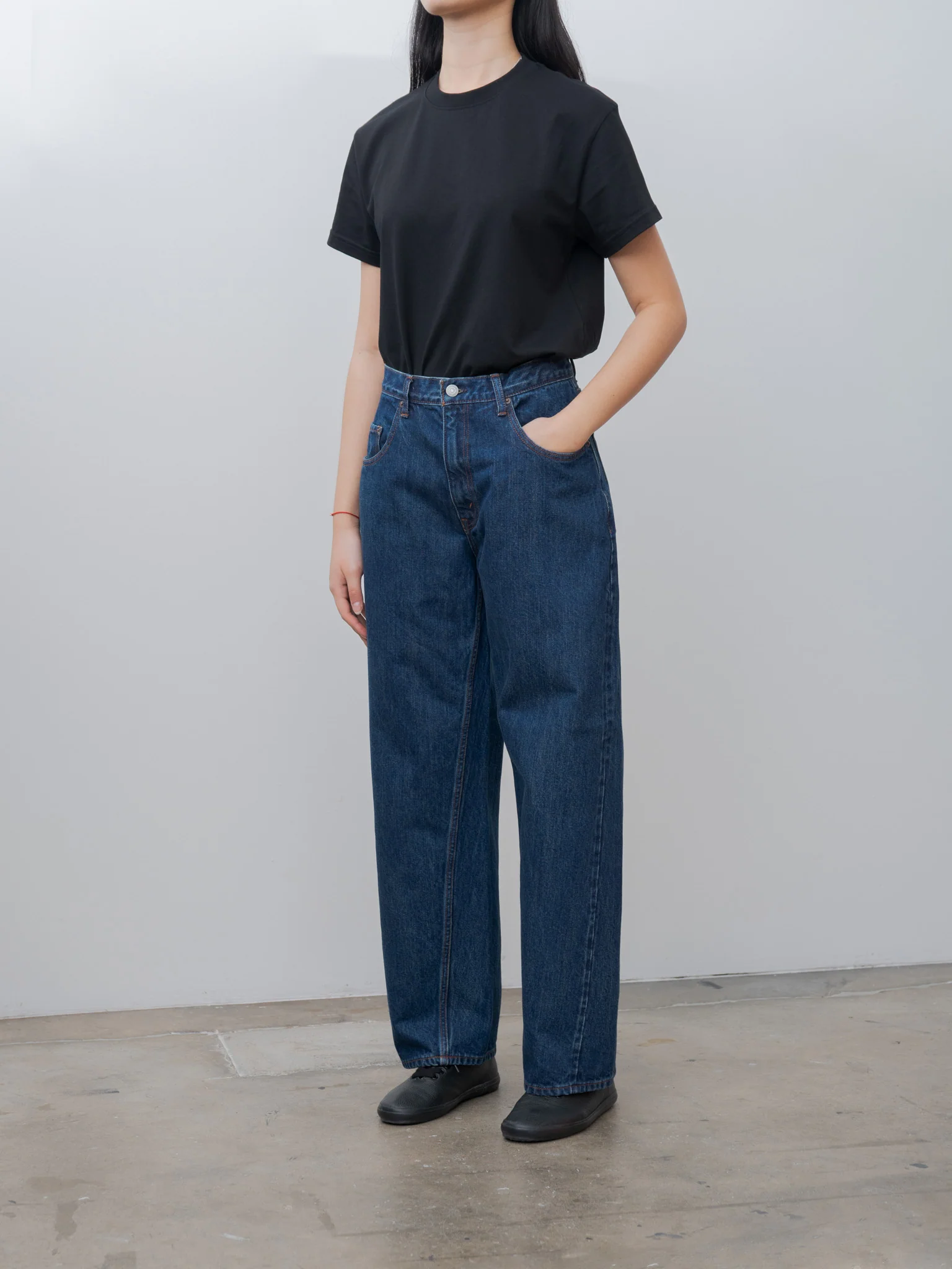 From CIOTA nostalgic denim of our dreams - perfectly loose, baggy fit jeans inspired by 1990s denim. It features a fitted waist with a deep rise, long and wide legs, 5 pocket construction and a twisted inseam. The blue denim uses warp threads that are rope-dyed with indigo, and wefts are made from suvin cotton - the two are finished as selvedge using an old-fashioned shuttle loom. The Dark Blue Damage has a vintage feel and features subtle fading throughout that is unique to each piece.Â