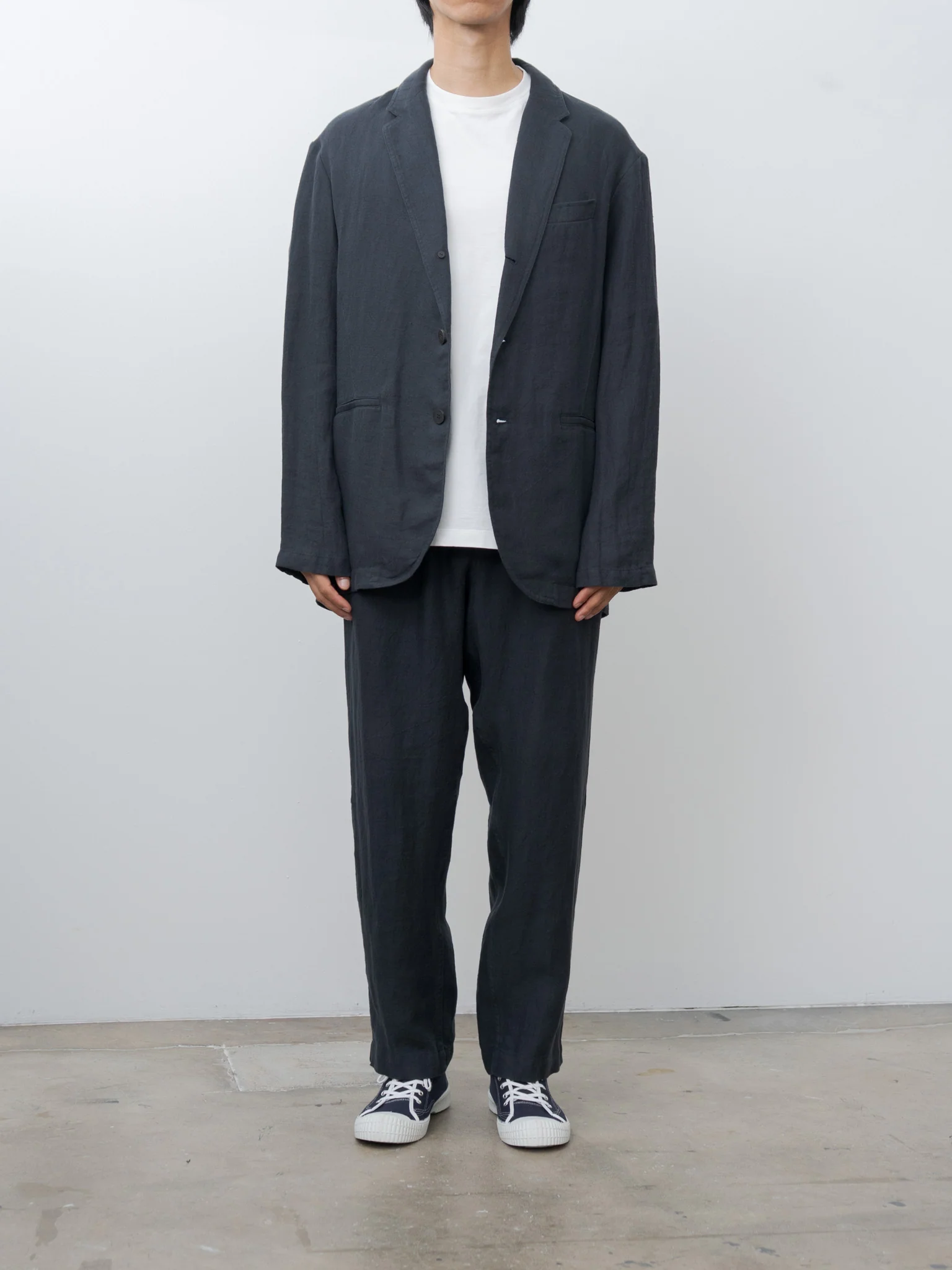 If you were to ever meet designer Jongsoo, you would agree when we describe him as an “art dad.” This unstructured jacket maybe captures that term best - it layers easily over a tee, giving the wearer a sense of sophistication without being too serious. We love the natural puckers and wrinkles of the garment-washed linen. Details include a notch lapel, front button closure, welt pockets, partial lining and a vented back hem. Coordinatig item with the Linen Relaxed Pants.Â