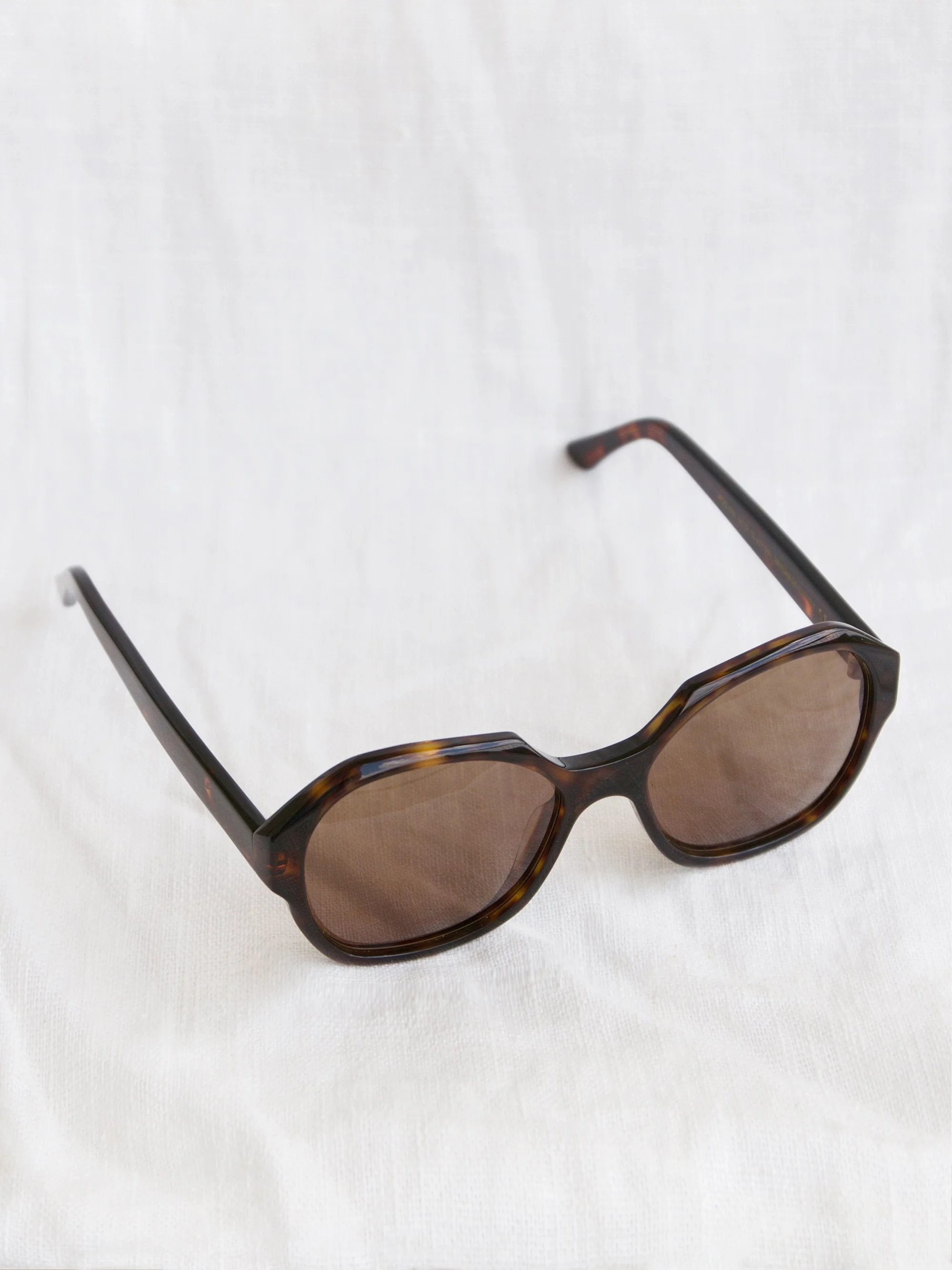 Deep espresso-colored tortoise frame with soft brown lens.