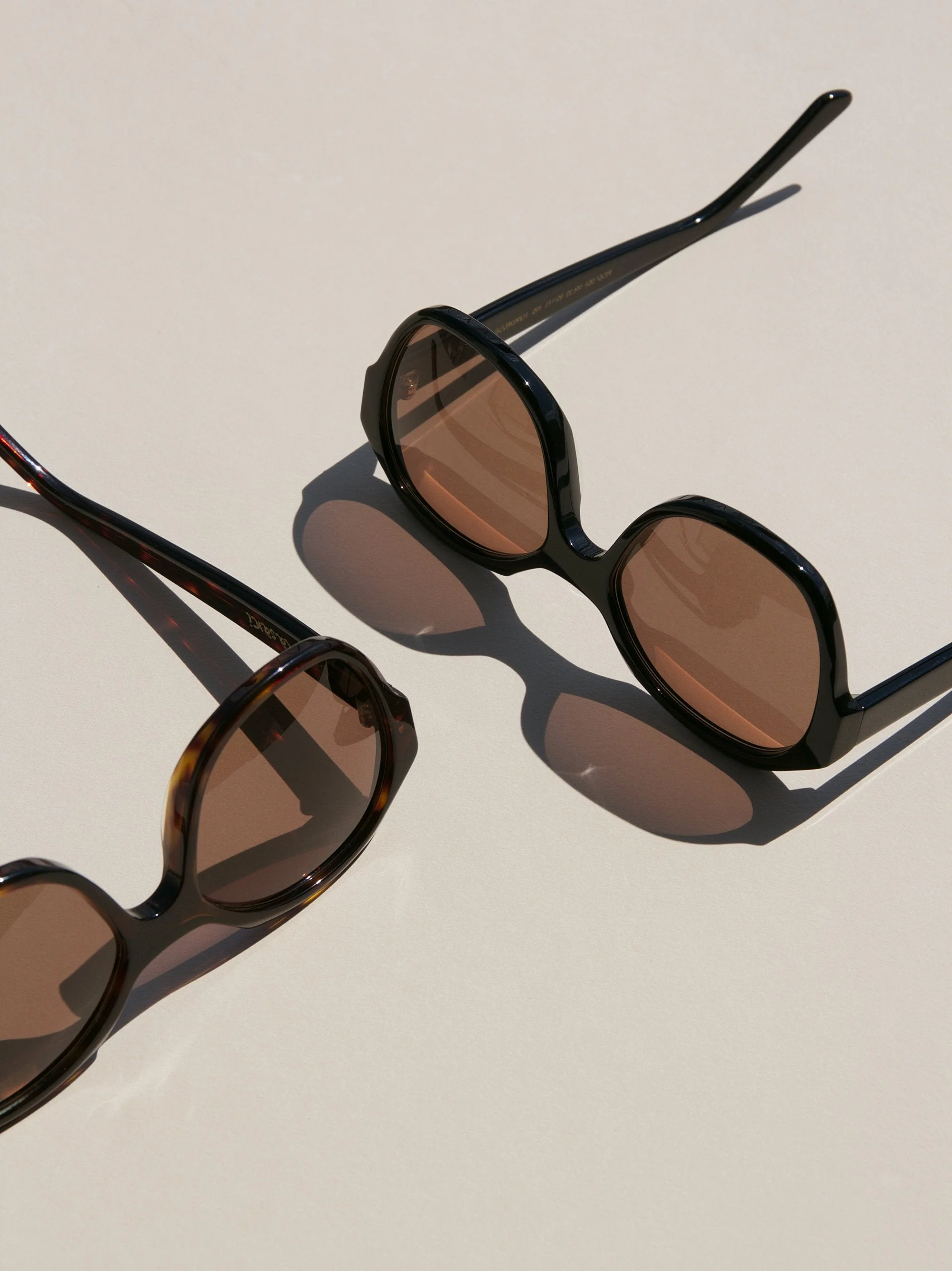 Classic black gloss frame with soft brown lens.