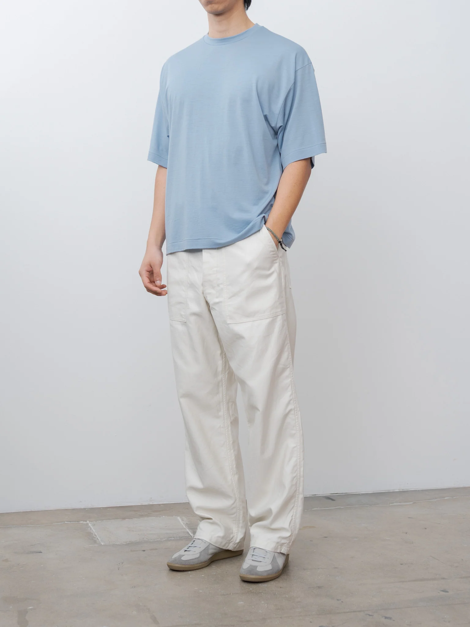 Kaptain Sunshine's signature baker trousers made in high density Egyptian Finx cotton with a subtle sheen and a smooth texture. It has been garment washed for a vintage look and feel. Details include a straight leg baggy fit, side tabs, front patch pockets and buttoned back patch pockets.Â
