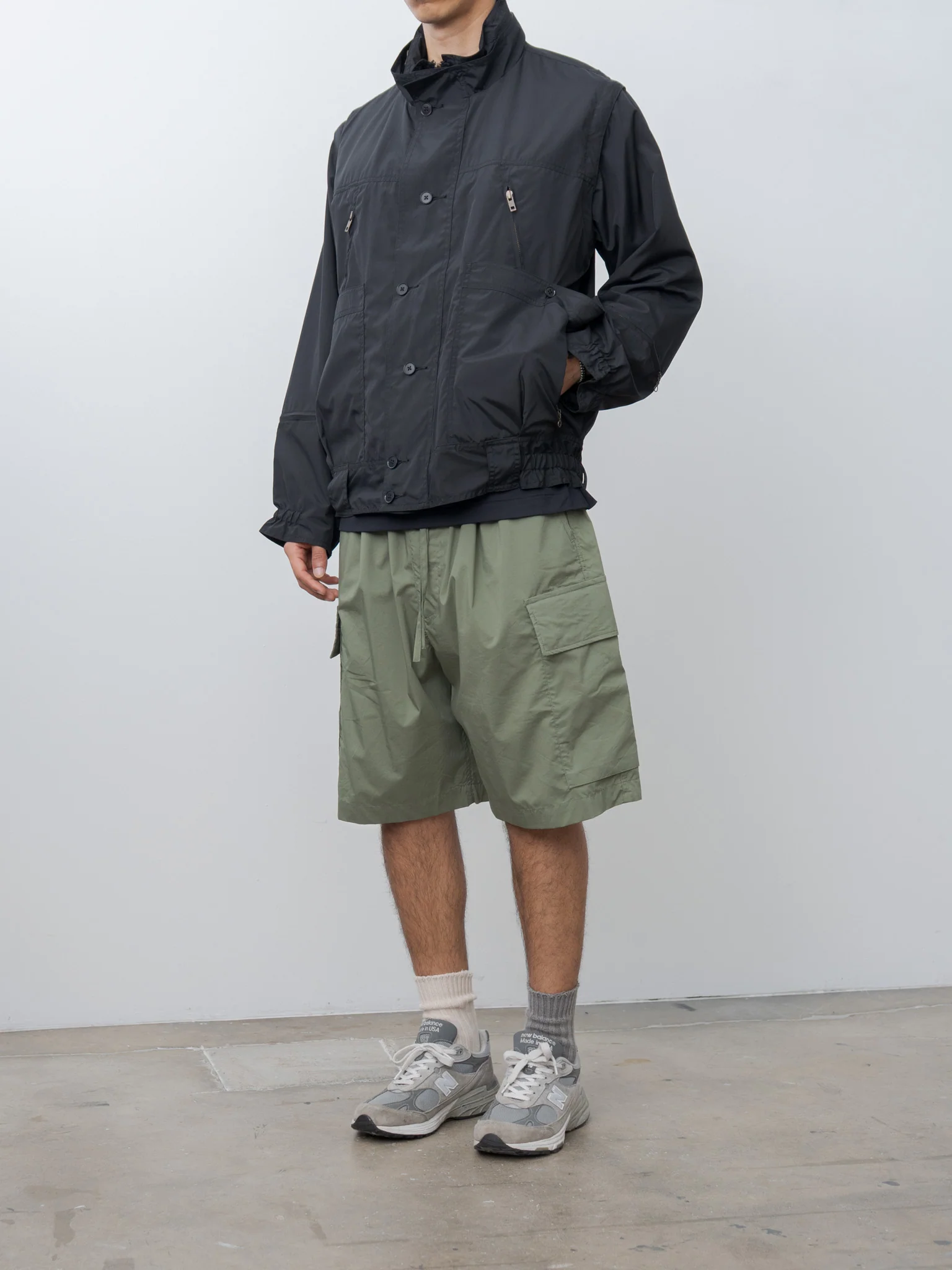 Wide fit cargo shorts from Kaptain Sunshine crafted from a cotton poly blend. It is a smooth material that balances lightness, suppleness and structure. Details include a drawstring elastic waist, side pockets and large, functional wrap around cargo pockets.