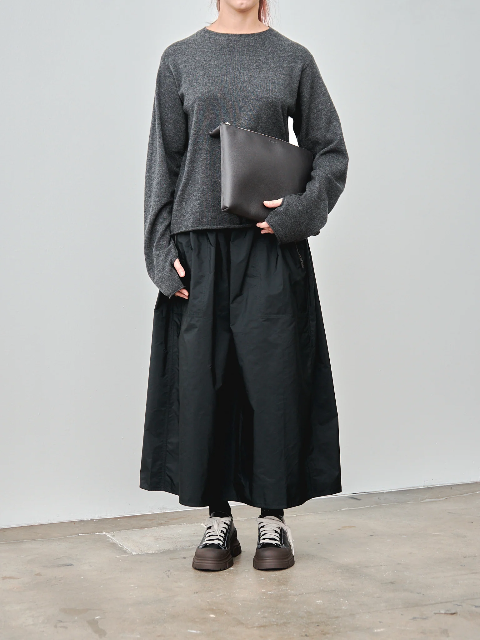 From Lemaire a padded document holder that is large enough to fit a small laptop (13") or tablet. The soft grained leather is supple yet resistant. It opens at the top with a tonal leather looped zip puller and has an additional interior pocket. Details include cotton canvas lining, metal zip, and embossed logo.Â