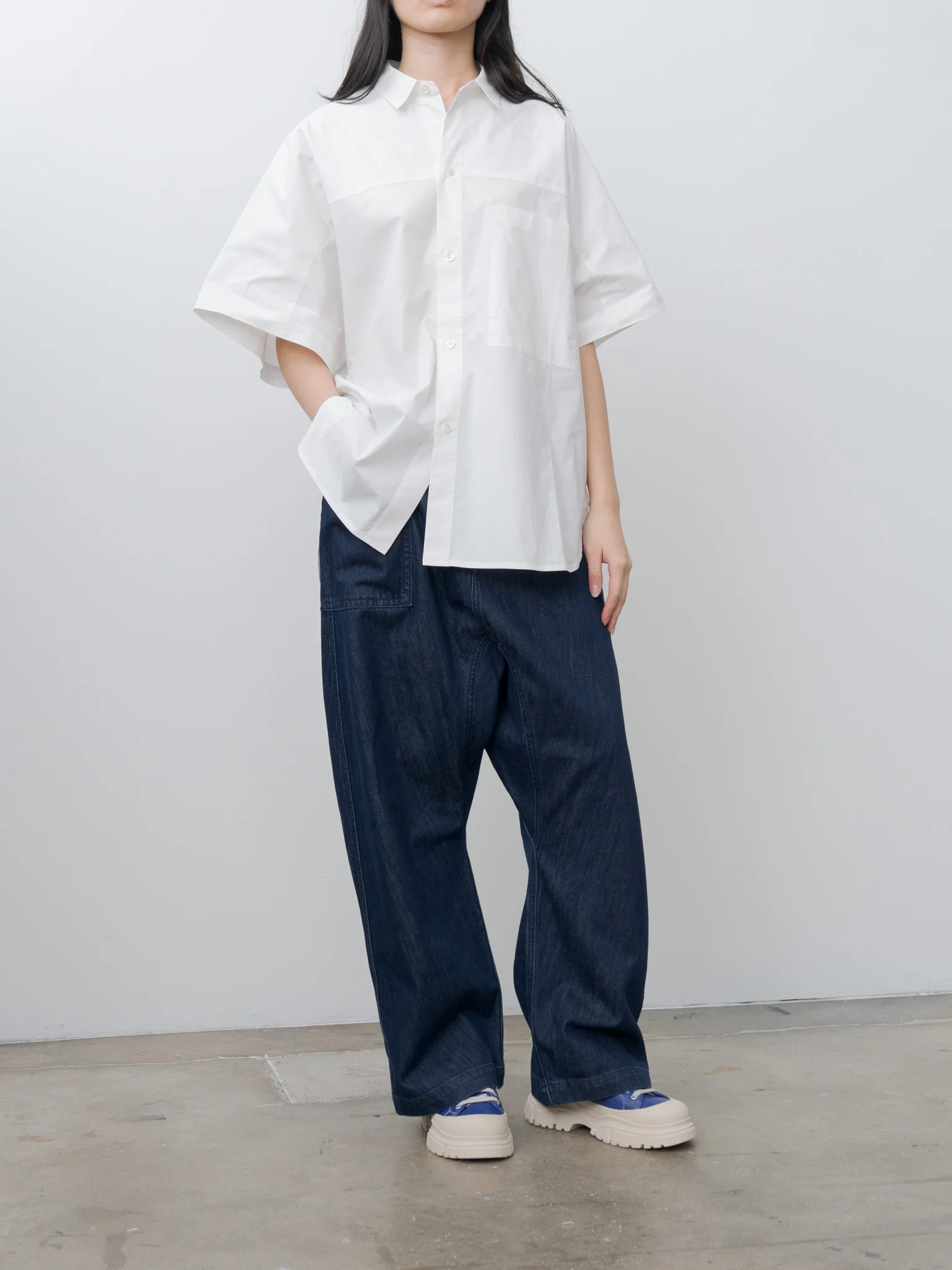 The Budapest is an oversized short sleeve button down shirt made in a crisp cotton poplin. It features grown on sleeves, a front patch pocket and a rounded hem with a slightly longer length in the back.
