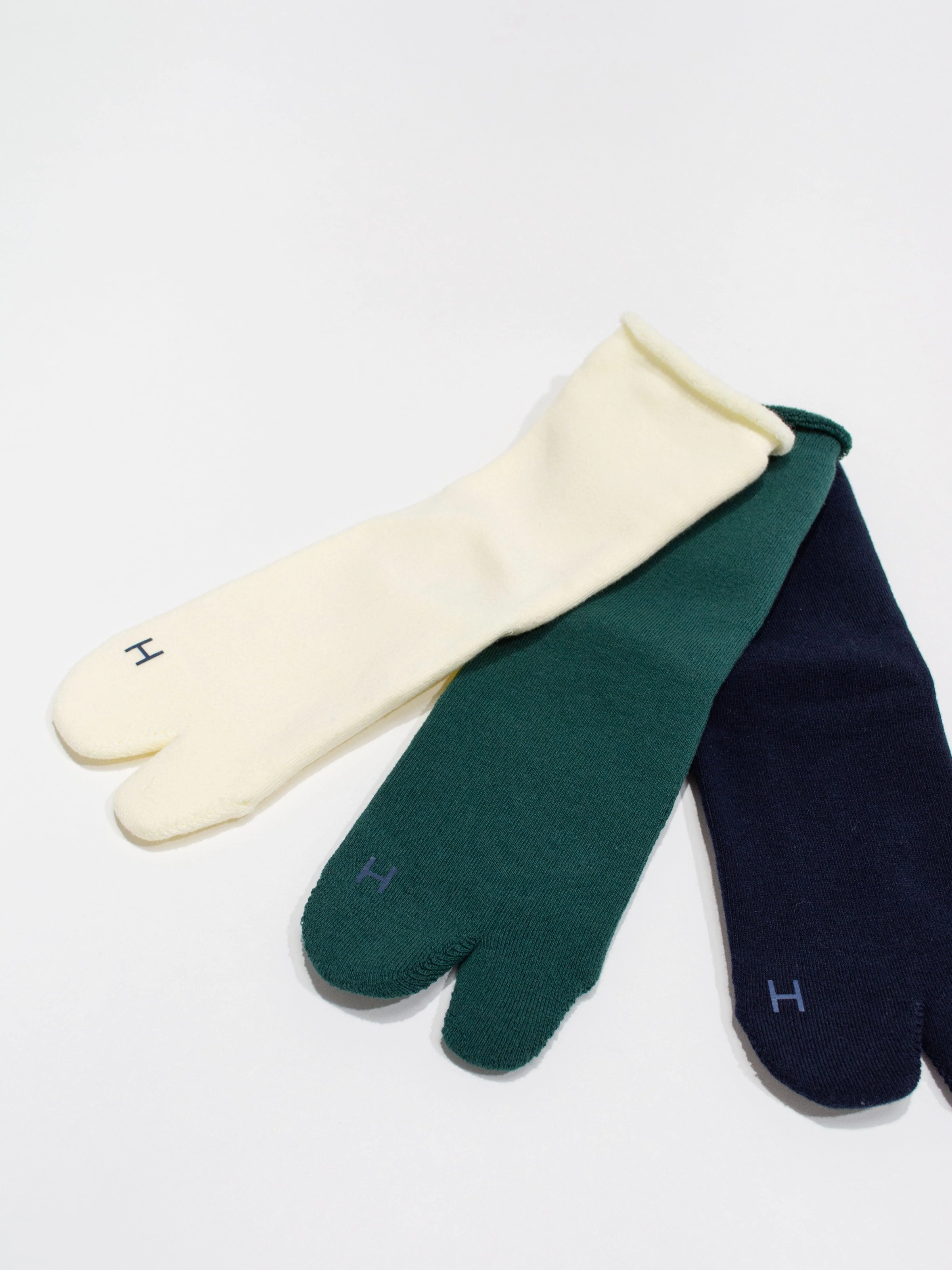 Tabi Pile Socks (Women's) - White, Green, Navy