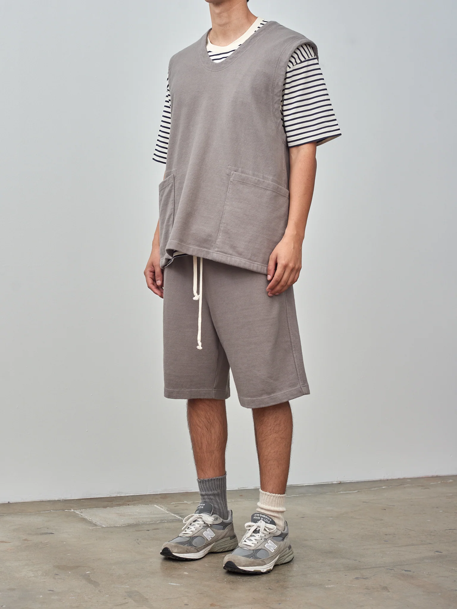 This vest from ts(s) features a wide and relaxed silhouette with large armholes and front pockets. The fabric is a textured heavy jersey cotton that has a soft hand feel. We recommend layering over a t-shirt and pairing with the Soft Heavy Jersey Easy Big Shorts.