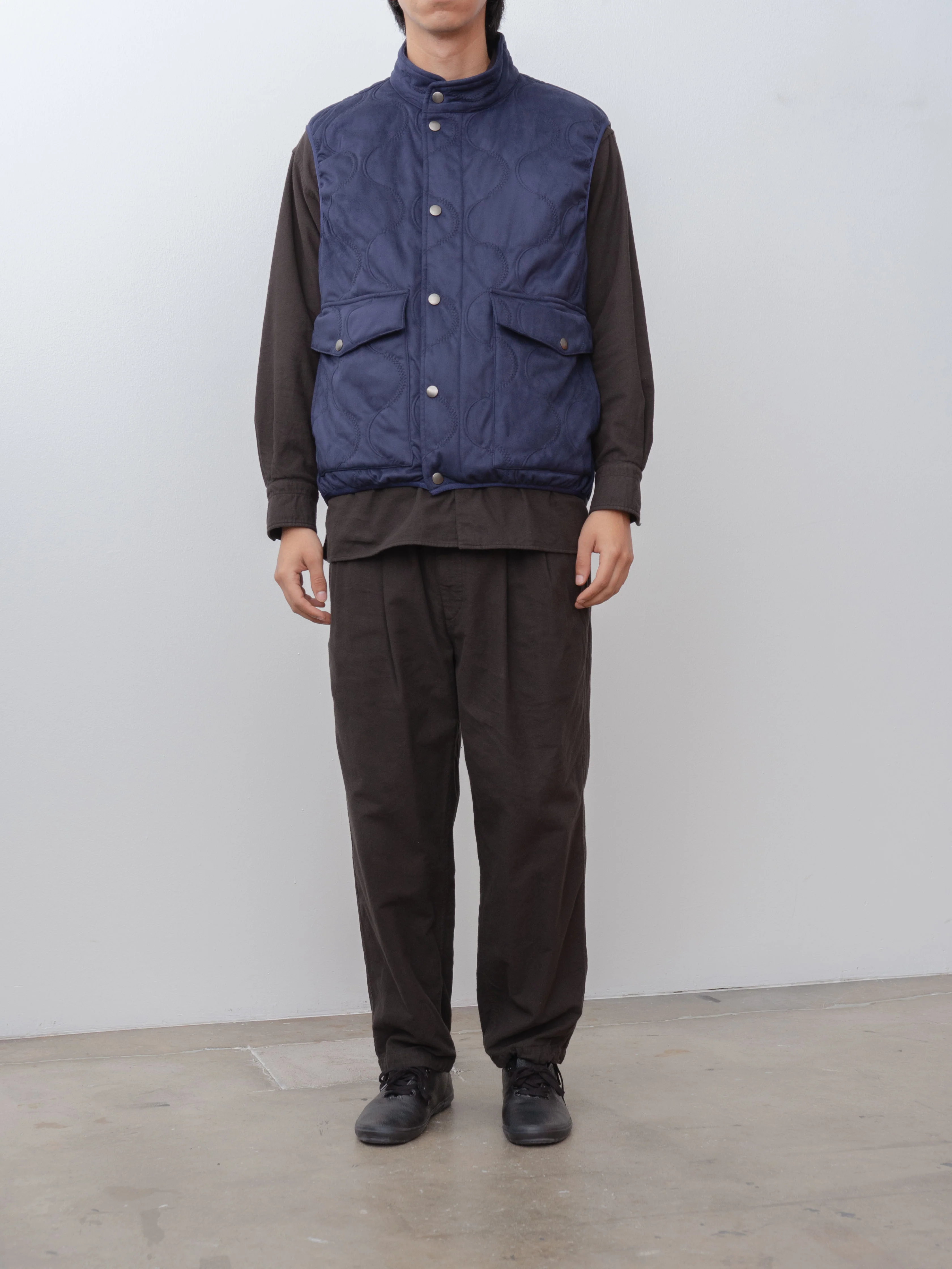 Vegan Nubuck Quilted High Neck Vest - Navy